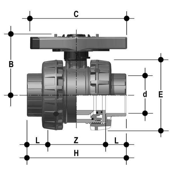 2-Wege Kugelhahn PVC-U VEE d90 EPDM