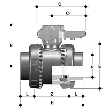 PVC-U 2-Wege Kugelhahn mit Klebemuffe VXEIV/FKM d 63