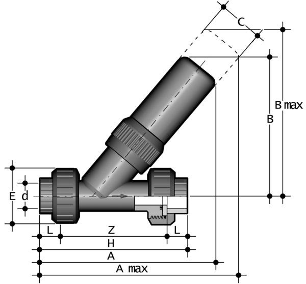 PVC-U Druckhalteventil, radial ausbaubar, mit PE-LS Stutzen SVUEV/EPDM d 32