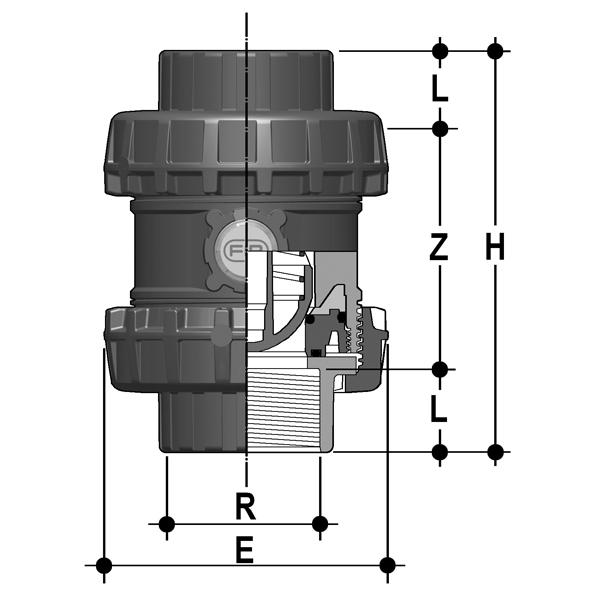 PVC-U Kugelrueckschlagv., Gewindem, radi al ein- und ausbau SXEFV/FKM DN80,3